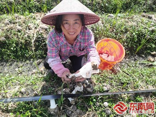“我們這的環(huán)境非常適合種植竹蓀,加上有科技特派員隊伍的支持,推廣的種植技術(shù)比較成熟,通常這里的竹蓀能長五批,現(xiàn)在第三批了,數(shù)量還是特別多,每天都組織十多名村民來采,高峰期可達四五十人?!敝裆p大戶傅金榮說。