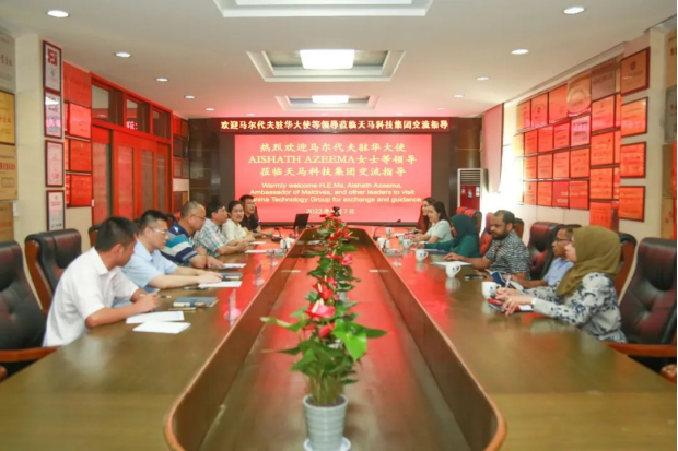 近日,馬爾代夫駐華大使Aishath Azeema一行赴我會副會長單位福建天馬科技集團(tuán)股份有限公司參觀交流,圍繞特種水產(chǎn)行業(yè)現(xiàn)代化發(fā)展、規(guī)模化養(yǎng)殖技術(shù)、馬爾代夫現(xiàn)代漁業(yè)轉(zhuǎn)型升級等主題展開座談。天馬科技集團(tuán)高層領(lǐng)導(dǎo)邱金謀、張蕉霖,副總裁何騰飛、施惠虹,集團(tuán)子公司福建三漁養(yǎng)殖有限公司總經(jīng)理楊明等熱情接待。