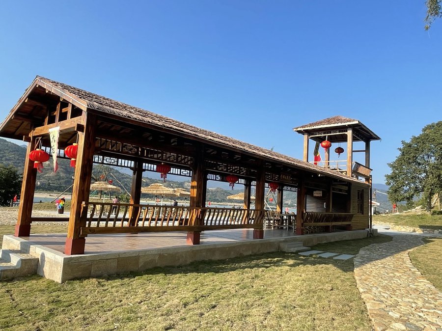 元口村田園鄉(xiāng)村旅游專業(yè)合作社開發(fā)建設(shè)濱江休閑中心(大眾茶館)。吳大武攝