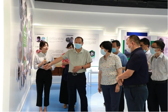 在高益槐教授、高煒總裁全程陪同下,邵旭軍副主席一行深入走訪了融入豐富多彩現(xiàn)代元素的福建省最大的生物科技文化館——安發(fā)科技文化館,詳細聽取了出生于華僑世家的高益槐教授對自身科研成就及帶著科技成果反哺家鄉(xiāng)、報效桑梓的創(chuàng)業(yè)情況介紹。邵旭軍副主席贊嘆高益槐教授勇于擔當、愛國愛鄉(xiāng)、助力三農(nóng)的情懷之路,對安發(fā)的企業(yè)文化、發(fā)展模式、食用菌的科技利用和產(chǎn)品研發(fā)興致盎然,不時駐足細致地觀看,詳細詢問了解。