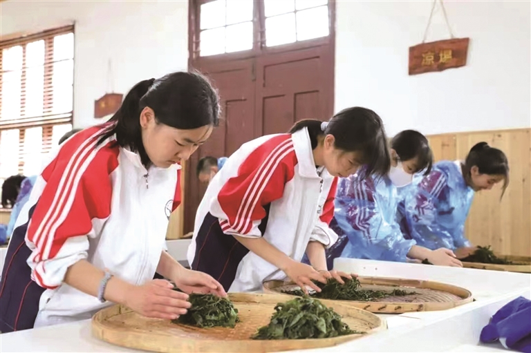 學生在社口鎮(zhèn)坦洋茶場學制茶