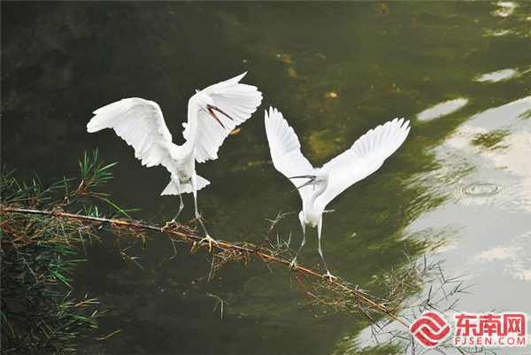 清晨,三明尤溪紫陽(yáng)公園里,伴隨著陣陣歡快的鳥(niǎo)鳴,晨練族在打拳跑步,濱水石廊邊,一群拿著“長(zhǎng)槍短炮”的攝影愛(ài)好者在“打鳥(niǎo)”……
