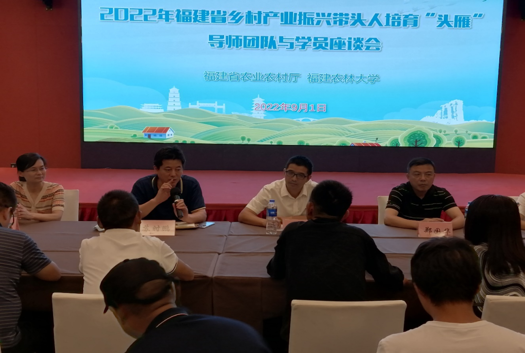 9月1日晚上19:00,由福建省農(nóng)業(yè)農(nóng)村廳主辦,福建農(nóng)林大學(xué)繼續(xù)教育學(xué)院承辦的福建省鄉(xiāng)村產(chǎn)業(yè)振興帶頭人培育“頭雁”項(xiàng)目“把脈問(wèn)診”座談會(huì)在福州如期舉辦。出席座談會(huì)的導(dǎo)師團(tuán)隊(duì)分別是園藝學(xué)院黨委書記肖紅新、鄭國(guó)華教授、副院長(zhǎng)曾黎輝教授,繼續(xù)教育學(xué)院院長(zhǎng)蘇時(shí)鵬教授與“頭雁”項(xiàng)目第一期培訓(xùn)班學(xué)員親切座談。