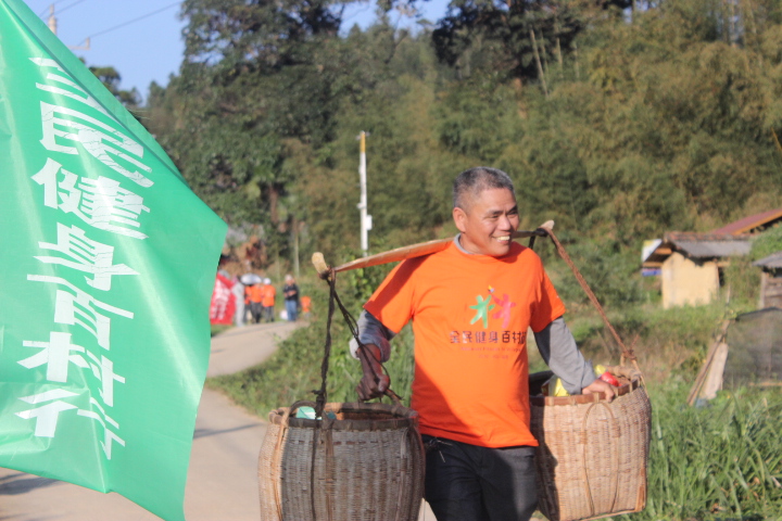 據(jù)介紹,“全民健身百村行”活動(dòng)旨在實(shí)現(xiàn)全民健身宣傳從城市向農(nóng)村輻射,通過(guò)送全民健身宣傳到廣大農(nóng)村、送全民健身活動(dòng)到老百姓身邊、送科學(xué)健身指導(dǎo)到農(nóng)村基層、送健身器材給廣大農(nóng)民為目的;以村運(yùn)、村游、村跑、村宴為載體,吸引廣大農(nóng)民關(guān)注全民健身、分享全民健身,實(shí)現(xiàn)健身運(yùn)動(dòng)的“全民性”,讓科學(xué)的健身方法、良好的生活習(xí)慣走進(jìn)廣闊田野。