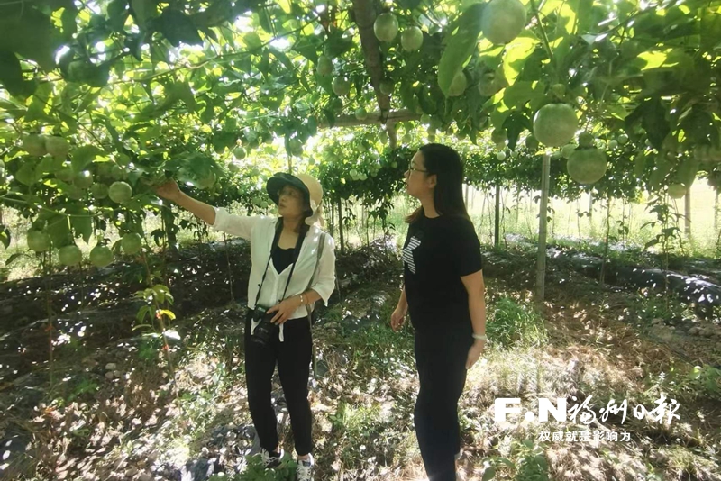 這些果子是福建省農(nóng)業(yè)科學院果樹研究所副研究員韋曉霞團隊歷經(jīng)多年培育出的可直接鮮食的百香果品種——“蜜語”。在閩侯縣農(nóng)業(yè)農(nóng)村局牽頭下,該品種由福建省三葉珍饈農(nóng)業(yè)科技有限公司在東墘村進行試種,之后將帶動當?shù)剞r(nóng)戶參與大面積種植,全面推向市場。