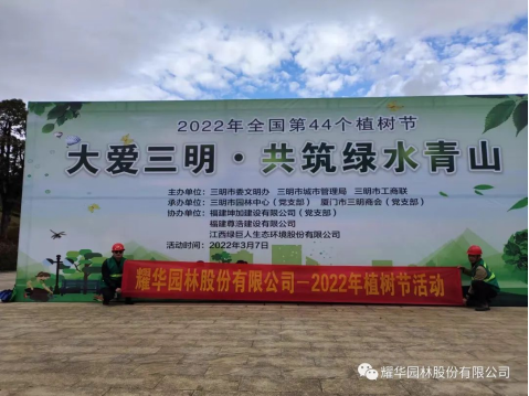 日前,三明市城市管理局、三明市工商業(yè)聯(lián)合會、三明市光彩事業(yè)促進會聯(lián)合發(fā)函,表揚我會理事單位耀華園林股份有限公司等相關(guān)企業(yè)、商會積極響應(yīng)號召,參與2022年城市植樹活動的先進事跡。