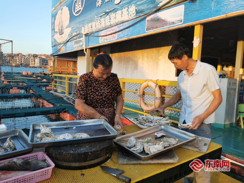 目前,惠嶼有6家民宿,3家餐飲店。圖為海上餐館的工作人員正在處理海鮮。東南網(wǎng)記者 謝玉妹 攝