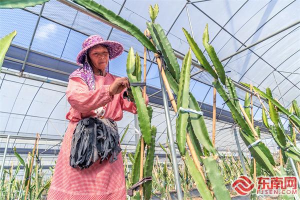 當(dāng)天,在石壁鎮(zhèn)閩臺(tái)農(nóng)業(yè)融合發(fā)展基地里,農(nóng)戶們正在忙著給基地蓋棚、除草、火龍果枝葉修剪、固位等。