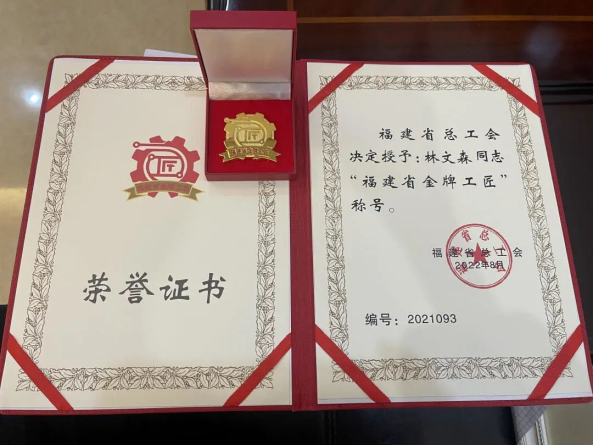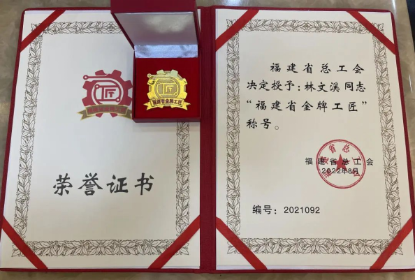 據(jù)悉,“福建省金牌工匠”是經(jīng)福建省總工會(huì)評(píng)定,在工作一線掌握較高技能,并在全省勞動(dòng)和技能競賽中勝出的優(yōu)秀工人代表,與勞動(dòng)模范一樣,是福建省總工會(huì)給予一線工人勞動(dòng)者的最高表彰。