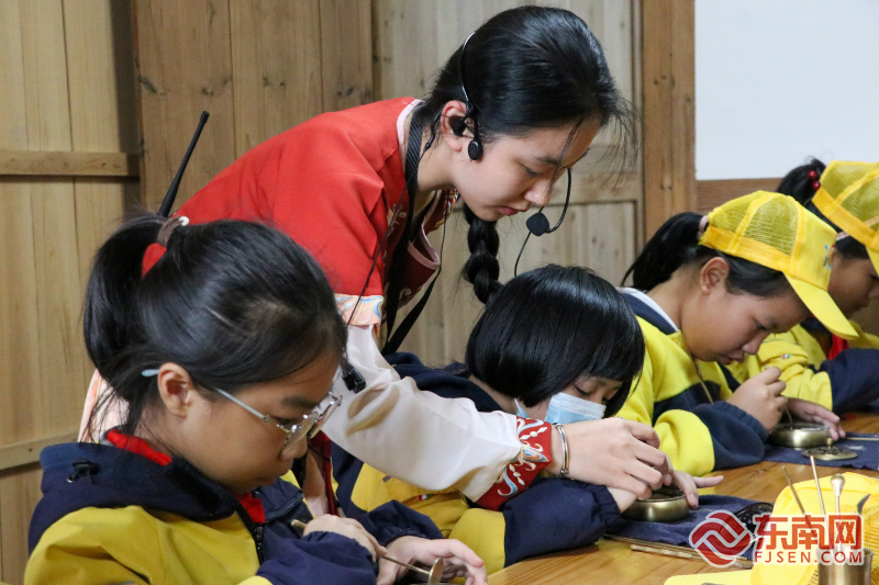學(xué)生在研學(xué)教育基地制篆香。東南網(wǎng)記者 葉伏國 攝