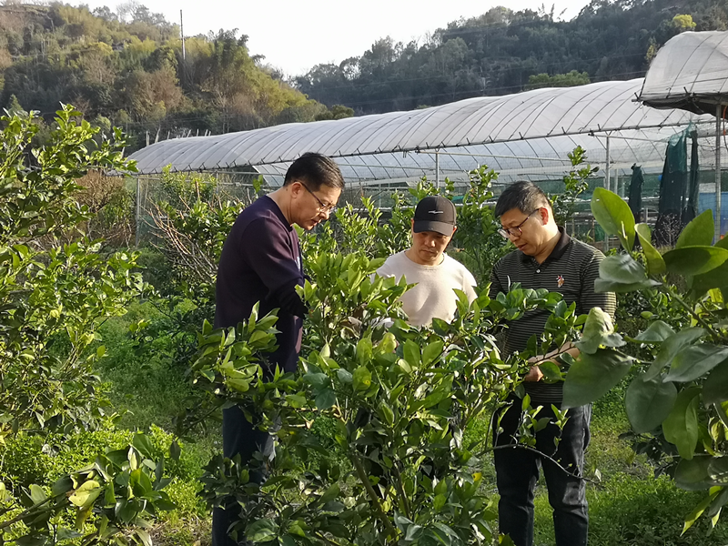 在甘棠鎮(zhèn)的“紅美人”柑橘種植基地,實(shí)地調(diào)查了薊馬、紅蜘蛛等小型刺吸害蟲(chóng)的危害情況,并就后繼開(kāi)展基于蟲(chóng)生真菌和捕食性天敵產(chǎn)品應(yīng)用的綠色防控工作提出具體的操作指引。同時(shí)根據(jù)種植企業(yè)的綠色控害需求,探討進(jìn)一步開(kāi)展科企合作內(nèi)容和方式,確保春耕工作有序展開(kāi)。
