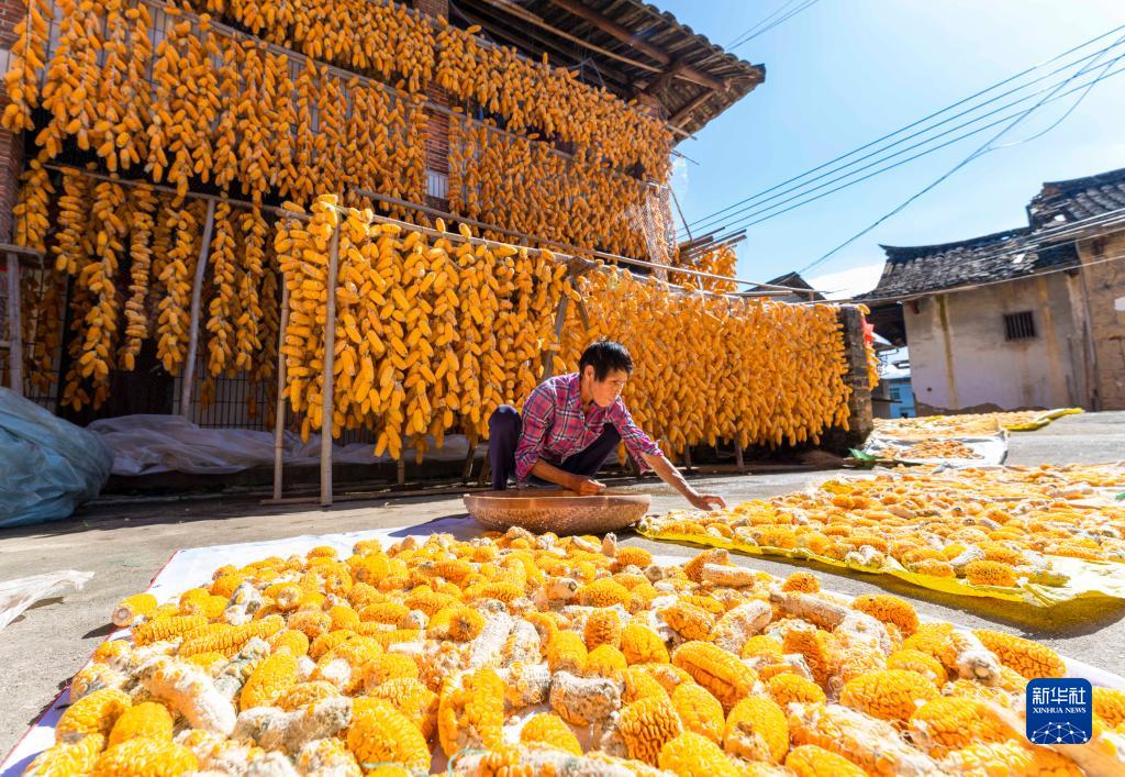 初冬時節(jié),漳州市南靖縣梅林鎮(zhèn)梅林村迎來玉米收獲季,村民們趁著晴好天氣晾曬玉米。近年來,南靖縣梅林鎮(zhèn)發(fā)揮地理優(yōu)勢,大力推廣玉米種植,以產(chǎn)業(yè)興旺帶動鄉(xiāng)村振興。