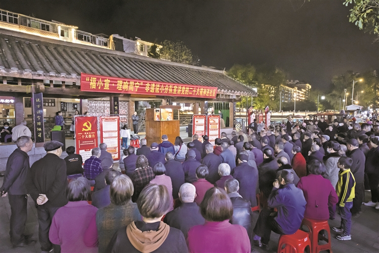 面對面現(xiàn)場宣講,開展“非遺+宣講”“文藝+宣講”等特色宣講……拋去照本宣科,沒有大話套話,“理響周寧”理論宣講輕騎兵深入基層,創(chuàng)新形式、豐富載體,變“固定講臺”為“流動課堂”,講解老百姓最關(guān)心的民生實(shí)事,把黨的二十大精神宣講內(nèi)容從“高大上”變得“接地氣”,真正讓老百姓坐得住、樂意聽、記得牢。