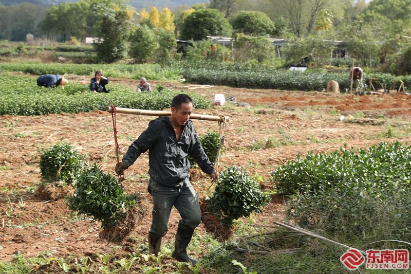 武夷山市星村鎮(zhèn)星村村民將拔起的茶苗挑上車外銷