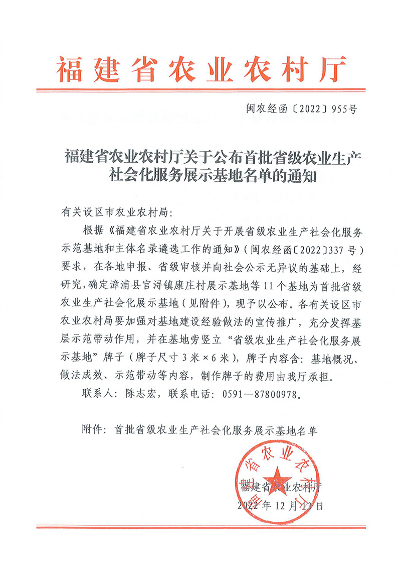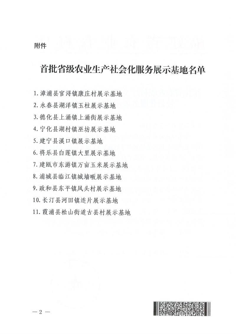 福建省農(nóng)業(yè)農(nóng)村廳關(guān)于公布首批省級農(nóng)業(yè)生產(chǎn)社會化服務(wù)展示基地名單的通知