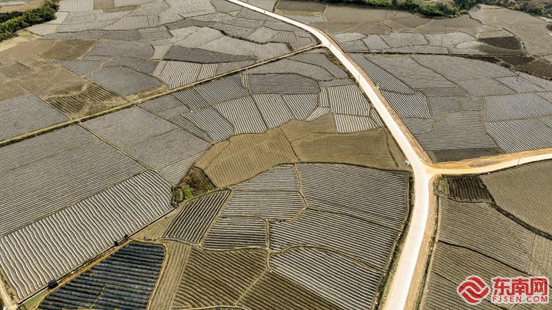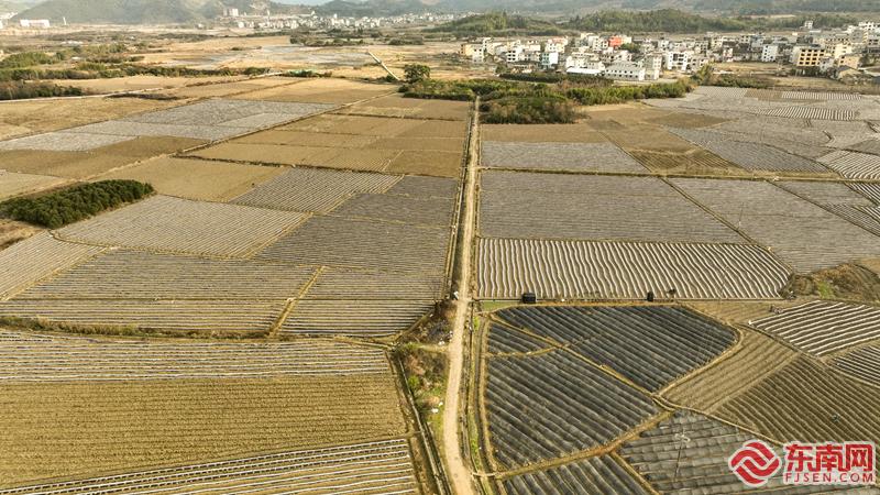 1月8日,武夷山市興田鎮(zhèn)西郊村村民在高標(biāo)準(zhǔn)農(nóng)田備耕冬種(無(wú)人機(jī)照片)