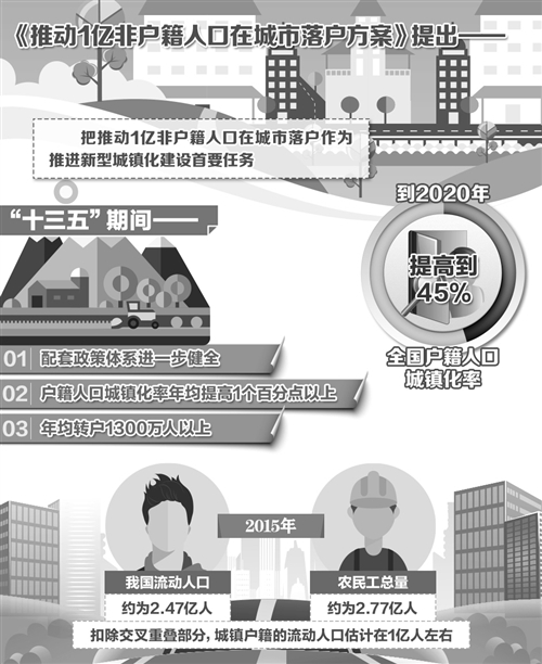 如何推動1億左右農(nóng)業(yè)轉(zhuǎn)移人口和其他常住人口等非戶籍人口在城市落戶,使有能力在城鎮(zhèn)穩(wěn)定就業(yè)和生活的農(nóng)業(yè)轉(zhuǎn)移人口舉家進城落戶,是我國推進新型城鎮(zhèn)化面臨的迫切任務(wù)。不久前,國務(wù)院辦公廳印發(fā)了《推動1億非戶籍人口在城市落戶方案》(以下簡稱《方案》)。
