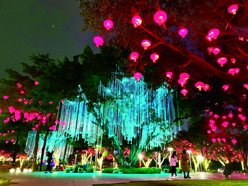 海滄市民公園里火樹銀花,流光溢彩,年味十足。