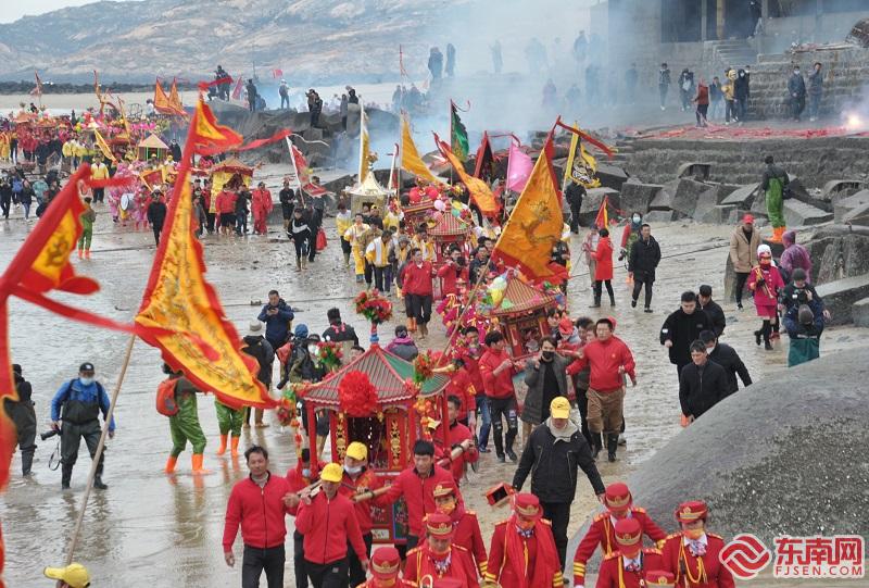 2月8日(農(nóng)歷正月十八),莆田市秀嶼區(qū)南日島浮葉村迎來了該村的元宵民俗——抬轎沖海。