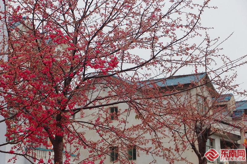 梅花謝后櫻花綻,淺淺勻紅。當(dāng)前,春光正好,莆田市涵江區(qū)白沙鎮(zhèn)坪盤村櫻花開始綻放,為綠色的春天增添一抹鮮紅。