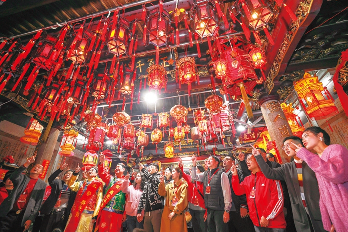 猜燈謎、逛市集、賞民俗……2月4日-5日元宵節(jié)期間,泉州晉江市為市民游客精心準(zhǔn)備豐富多彩的元宵活動(dòng),數(shù)宮燈、舞香龍等傳統(tǒng)民俗,吸引市民競(jìng)相觀看,現(xiàn)場(chǎng)人聲鼎沸、熱鬧非凡。