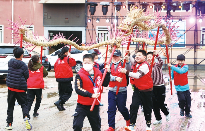 孩子們體驗(yàn)民俗活動(dòng)“舞香龍”