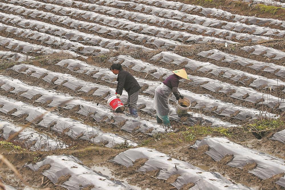 12日,武夷山市上梅鄉(xiāng)下陽(yáng)村村民在高標(biāo)準(zhǔn)農(nóng)田春耕備耕。立春以來(lái),武夷山市各鄉(xiāng)(鎮(zhèn))村民早早下地,掀起春耕備耕熱潮。
