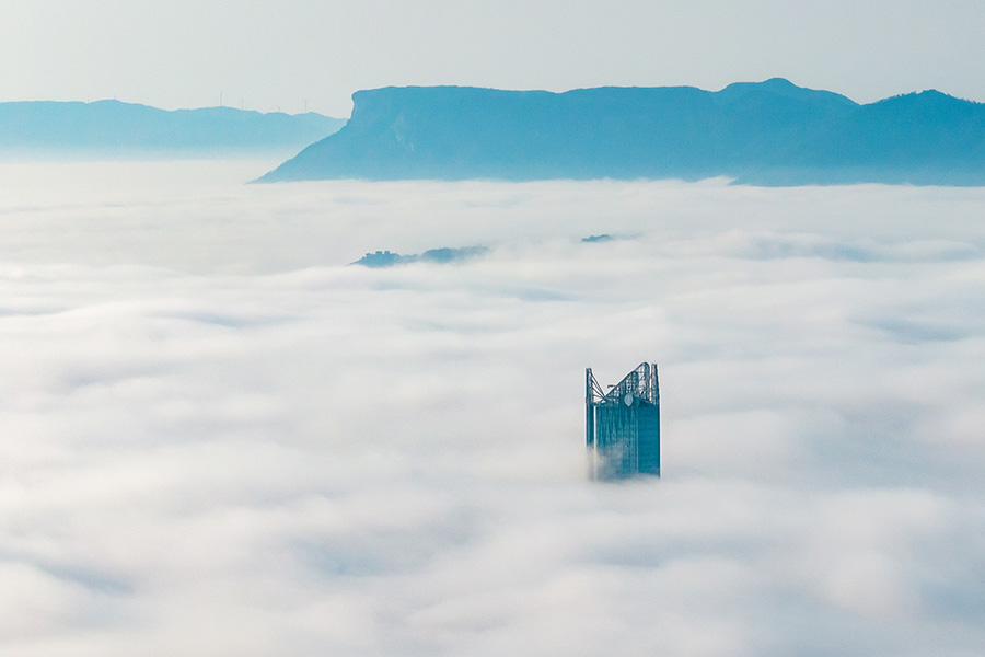 2月13日清晨,福建福州化身“天空之城”。葉民民攝