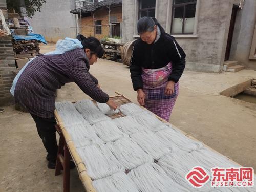 每到紅薯成熟時節(jié),在南平市建陽區(qū)麻沙鎮(zhèn)永興村就會出現(xiàn)家家洗紅薯、戶戶掛粉絲的場景。一口口臨時搭建的土灶臺前熱氣騰騰,十幾個村民分工合作,晶瑩透亮、光滑爽口的紅薯粉絲碼放整齊,場面非常壯觀。