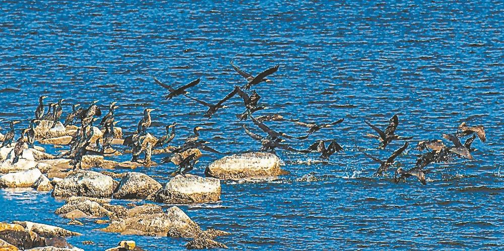 碧海銀灘,是平潭的生態(tài)名片。近年來,當(dāng)?shù)亓⒆愫u現(xiàn)有生態(tài)及地貌特征,大力發(fā)展生態(tài)旅游產(chǎn)業(yè),全島生態(tài)面貌得到極大改觀,繪就一幅美麗的生態(tài)畫卷。圖為14日,金井如意湖公園,波光粼粼的湖面上,成群的鸕鶿在翩躚飛翔。