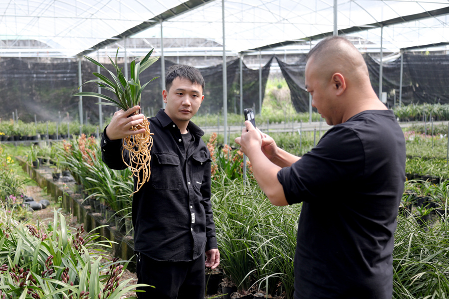 返鄉(xiāng)創(chuàng)業(yè)的90后大學(xué)生劉順理是該基地的負(fù)責(zé)人。2015年,劉順理創(chuàng)立公司,專注蘭花線上線下銷售。2018年,他借助原有成熟的電商平臺(tái)引流,開始以平臺(tái)直播的方式銷售蘭花。
