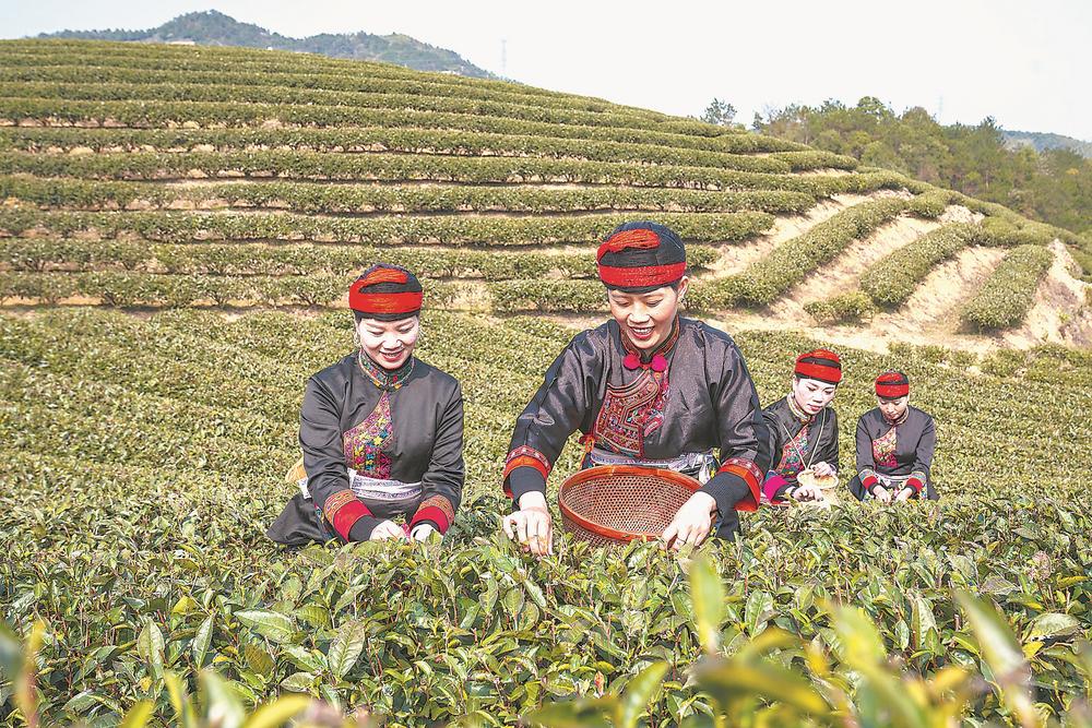 寧德市霞浦縣鹽田鄉(xiāng)洋邊村寨下畬族自然村舉行開(kāi)茶節(jié),身著畬族盛裝的男女畬民在茶山上采摘春茶(如圖),吸引眾多游客和茶商前來(lái)觀賞、拍照和洽談茶葉銷售業(yè)務(wù),促進(jìn)畬民增收致富。