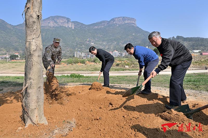 暖晴春日好,植綠正當(dāng)時(shí)。16日,福建省委書(shū)記、省人大常委會(huì)主任、總林長(zhǎng)周祖翼,省委副書(shū)記、省長(zhǎng)、總林長(zhǎng)趙龍,東部戰(zhàn)區(qū)陸軍司令員孔軍,省政協(xié)主席滕佳材等來(lái)到福州市閩侯縣五虎山國(guó)家森林公園地塊,與福州干部群眾一同參加義務(wù)植樹(shù)活動(dòng)。