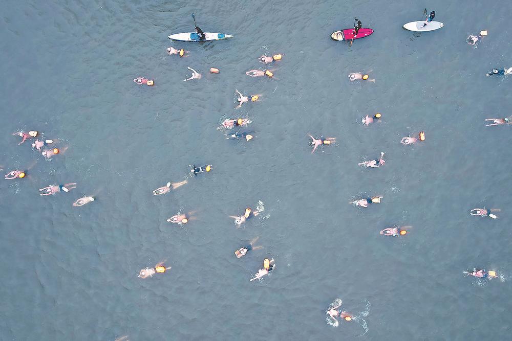 19日,由福州冬泳協(xié)會(huì)主辦的2023年“千人暢游閩江”活動(dòng)在閩江公園華龍園舉行。38支冬泳隊(duì)1082名冬泳愛好者展開精彩的水上競(jìng)逐,享受自然水域暢游帶來的快樂。