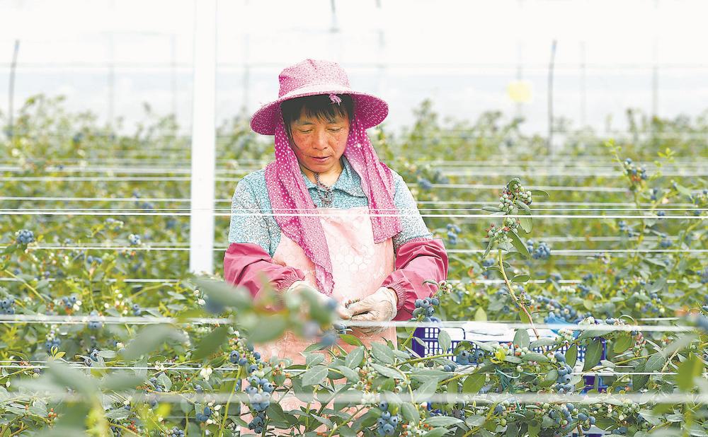 21日,在泉州市德化縣牧谷農(nóng)業(yè)藍莓種植園,果農(nóng)忙著采收藍莓鮮果,供應市場。