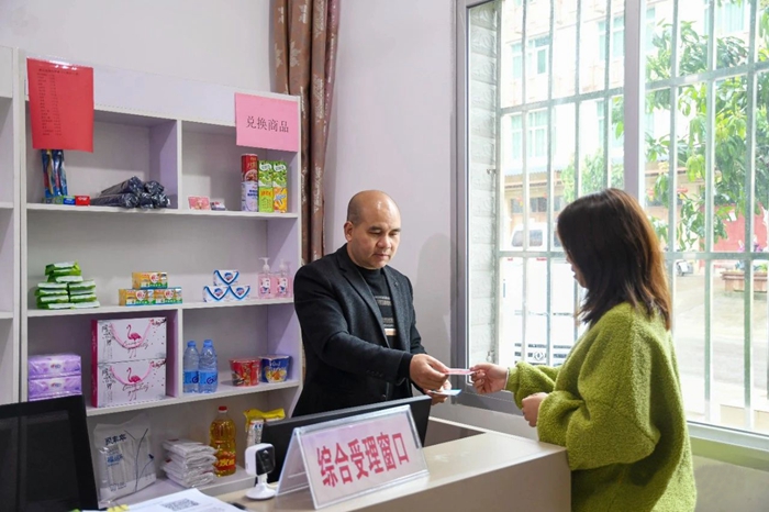10積分為1元,村民積攢的積分可以在積分兌換點(diǎn)兌換生活用品,也可以前往愛(ài)心公益超市選購(gòu)任意等價(jià)商品。