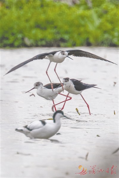 莆田市持續(xù)抓好木蘭溪流域生態(tài)保護(hù)工作,生態(tài)環(huán)境日益改善,鳥類品種和數(shù)量不斷增加。圖為4月3日清晨,木蘭溪入??谌阪?zhèn)附近的灘涂上,數(shù)百只長腳鷸在棲息和捕食。