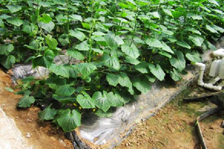走進(jìn)大棚,綠油油的黃瓜散發(fā)著悠悠清香。