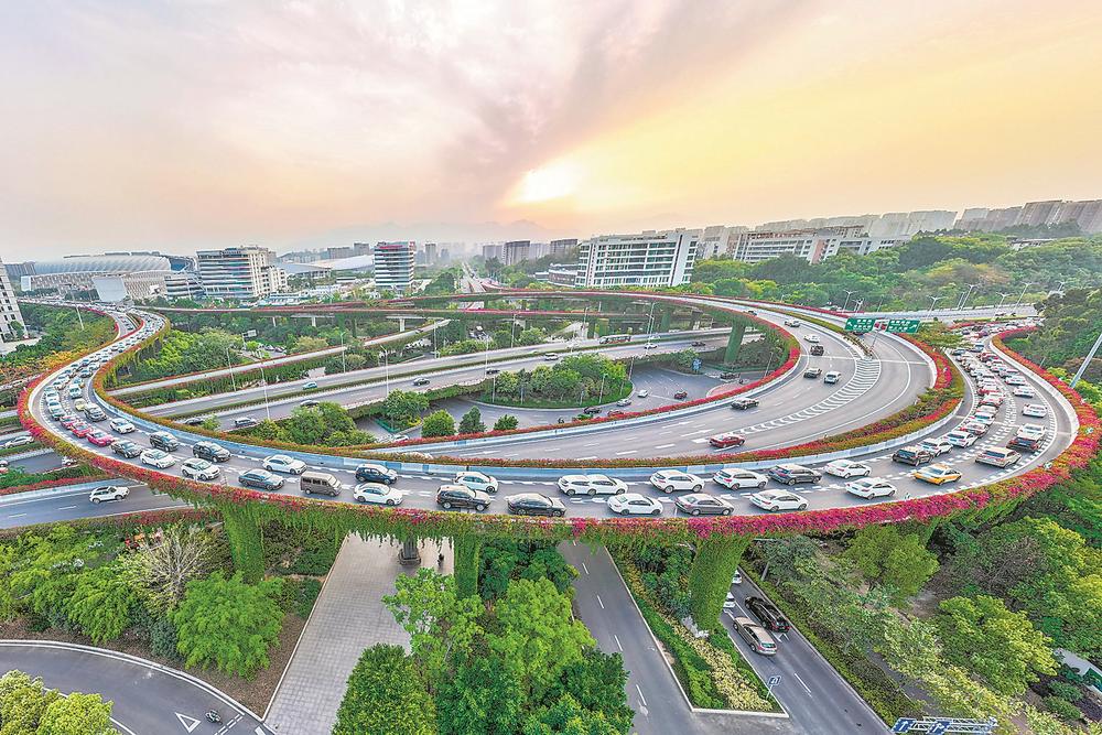 15日,福州市倉山區(qū)雙湖互通高架橋上,落日余暉中,道路兩側(cè)三角梅在春日里競相綻放,帶給市民“一路生花”的視覺享受,讓城市立交橋成為一道美麗的風(fēng)景。近年來,福州市加快建設(shè)城市綜合交通體系,持續(xù)實施交通緩堵工程,著力打造“1小時通勤都市圈”,輻射帶動周邊一體化發(fā)展。