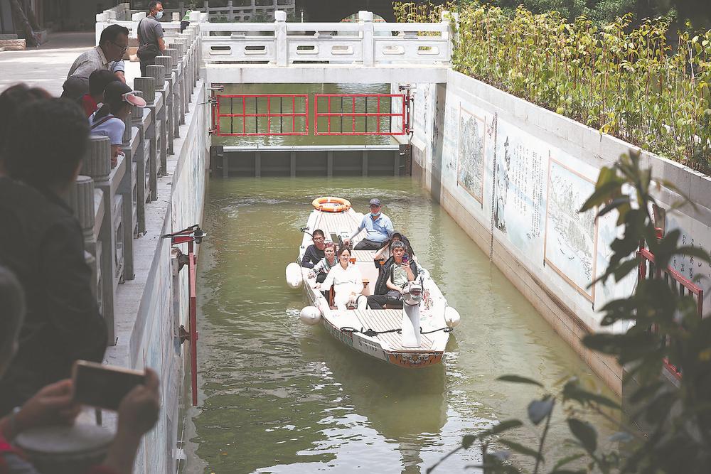 福州城區(qū)內(nèi)河四通八達(dá),水網(wǎng)密布,景色如畫,成為當(dāng)?shù)靥厣糜雾?xiàng)目。圖為3日,游客乘船游覽福州白馬河。