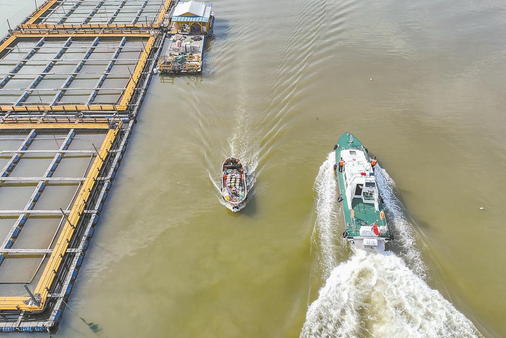 5日,在福鼎市沙埕中心漁港,寧德海警局福鼎工作站的摩托艇正在港區(qū)巡查。今年伏季休漁伊始,當(dāng)?shù)睾>?、海洋與漁業(yè)、海事等部門聯(lián)動,開展專項執(zhí)法檢查和海上巡查,全力維護(hù)伏季休漁期間海上安全。