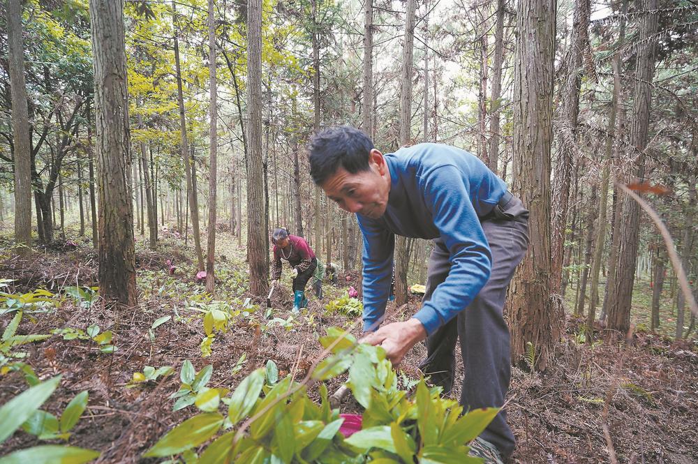 11日,將樂(lè)縣高唐鎮(zhèn)??诖宕迕裨诹值亻g種植中藥材黃精。該村目前已種植300多畝仿野生種植黃精,預(yù)計(jì)每畝產(chǎn)值可超1萬(wàn)元。