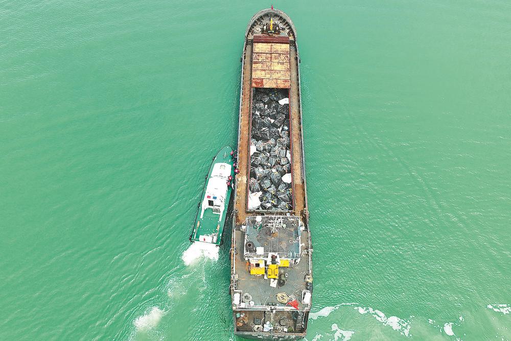 執(zhí)法船靠近嫌疑船。