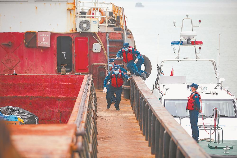 執(zhí)法人員登上嫌疑船。