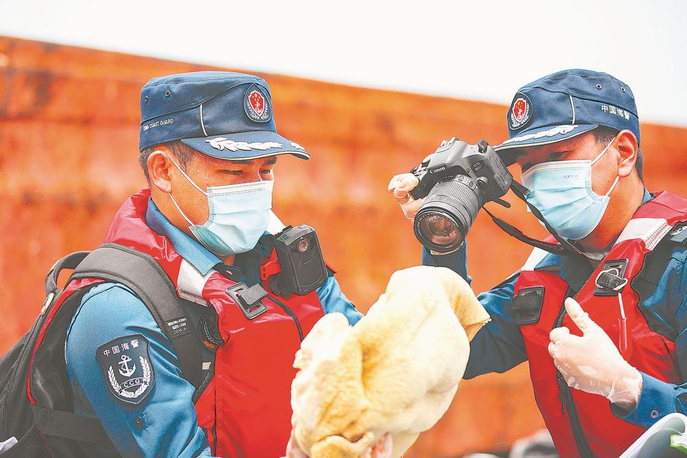 海警執(zhí)法艇立刻拉響警笛,并喊話亮明身份,快速靠近該嫌疑船,實施靠幫登臨檢查,第一時間控制了該嫌疑船。經(jīng)初步核查,該船無法提供涉案凍品的任何合法手續(xù),涉嫌非法走私凍品100余噸(具體數(shù)量待測)。該案正在進一步偵辦中。