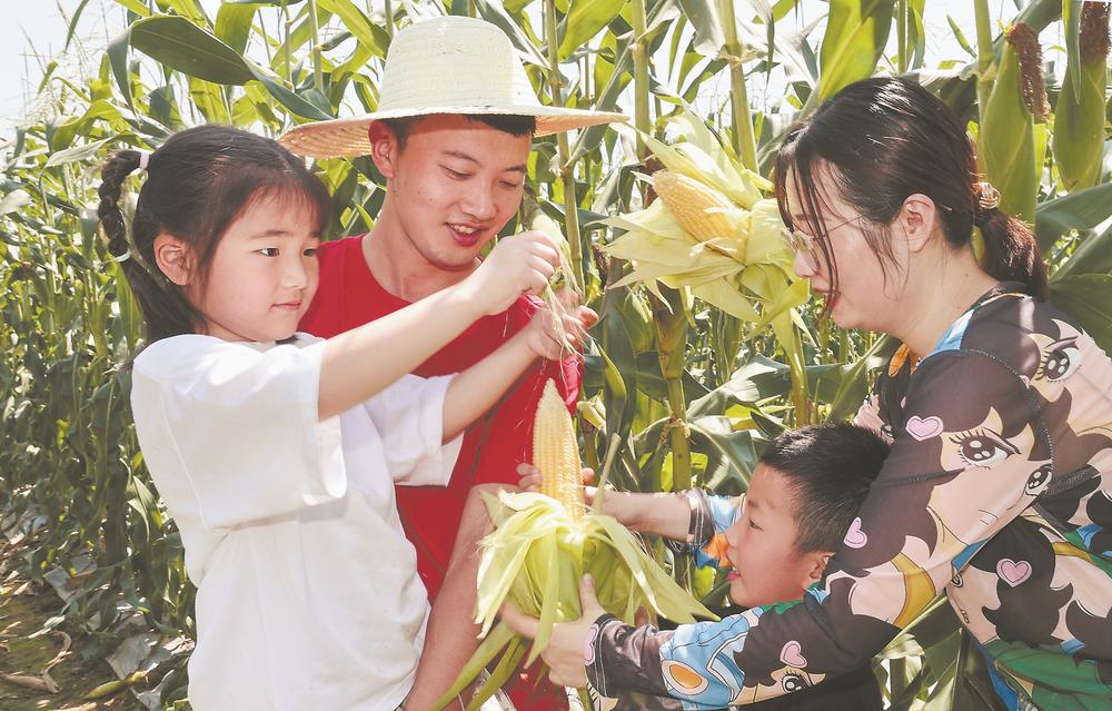 游客在建甌東游鮮食玉米萬畝種植基地采摘玉米。 魏永青 攝