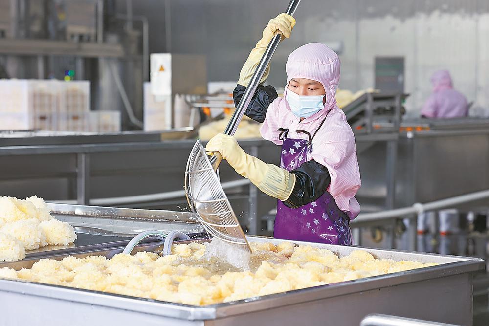 位于閩東山區(qū)的古田縣擁有“中國食用菌之都”美譽(yù)。近年來,古田縣加大工廠化栽培力度,推行“公司+合作社+農(nóng)戶”經(jīng)營模式,逐步形成食用菌培植、生產(chǎn)、精深加工、線上線下銷售一體化的產(chǎn)業(yè)鏈,帶動(dòng)農(nóng)民增收致富,助力鄉(xiāng)村振興。圖為近日,在古田縣晟農(nóng)無公害銀耳基地,工人正在生產(chǎn)車間清洗銀耳。