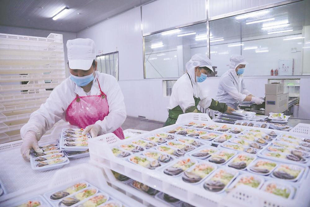 近日,位于東山縣的新旺食品有限公司生產(chǎn)線上,工人在包裝方便菜肴,準備銷往國內(nèi)高端酒店。據(jù)了解,該公司主要生產(chǎn)鮑魚、蝦類制品,年產(chǎn)值達5000萬~6000萬元,今年初至今產(chǎn)量同比增長近20%,已恢復到2019年水平。
