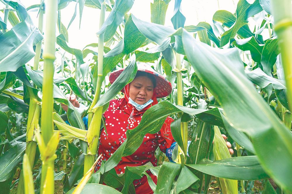 農(nóng)戶采收鮮食玉米