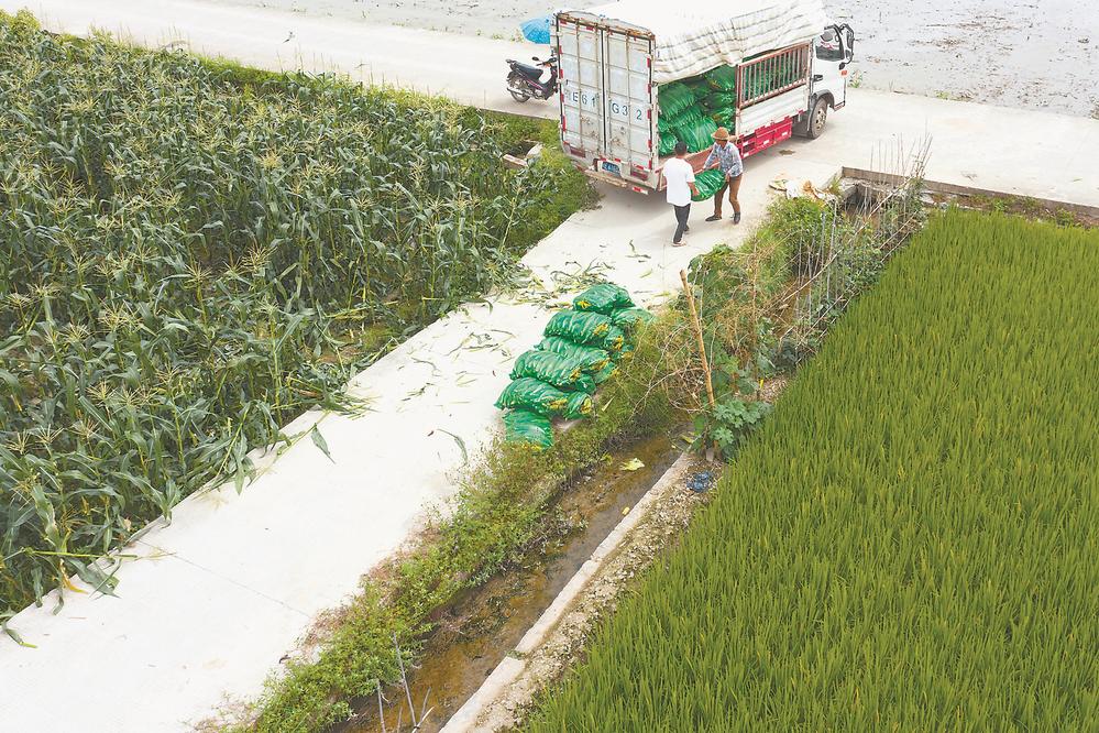 打包好的玉米被搬上貨車